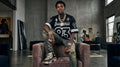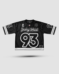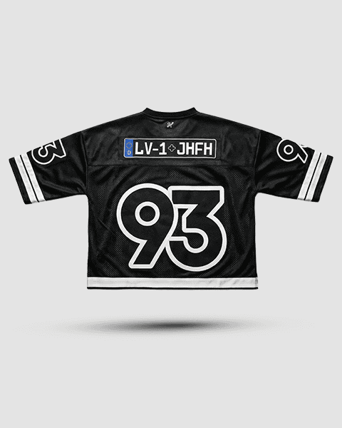 A double-layered, heavyweight jersey designed for presence. The silky interior lays on the skin like a cool satin pillowcase, while the structured mesh exterior keeps everything sharp and breathable. Finished with crisp white embroidery—oversized 93, captain’s mark, sleeve numerals, and a signature license-plate patch—it carries the weight of a collectible and the confidence of a crown.